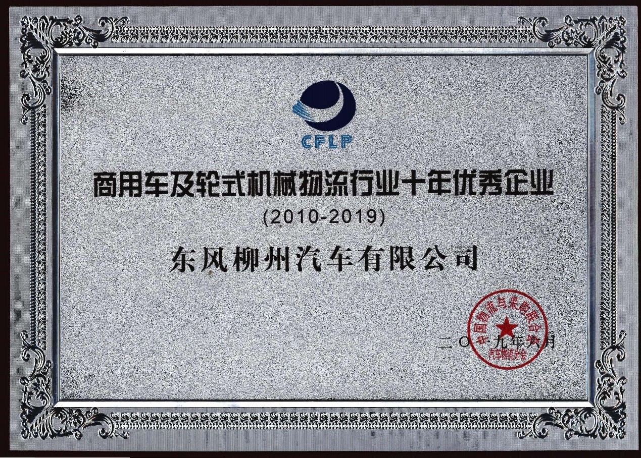 获奖名称:商用车及轮式机械物流行业十年优秀企业(2010-2019)