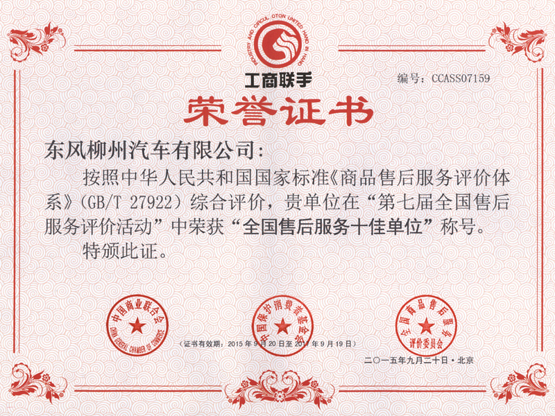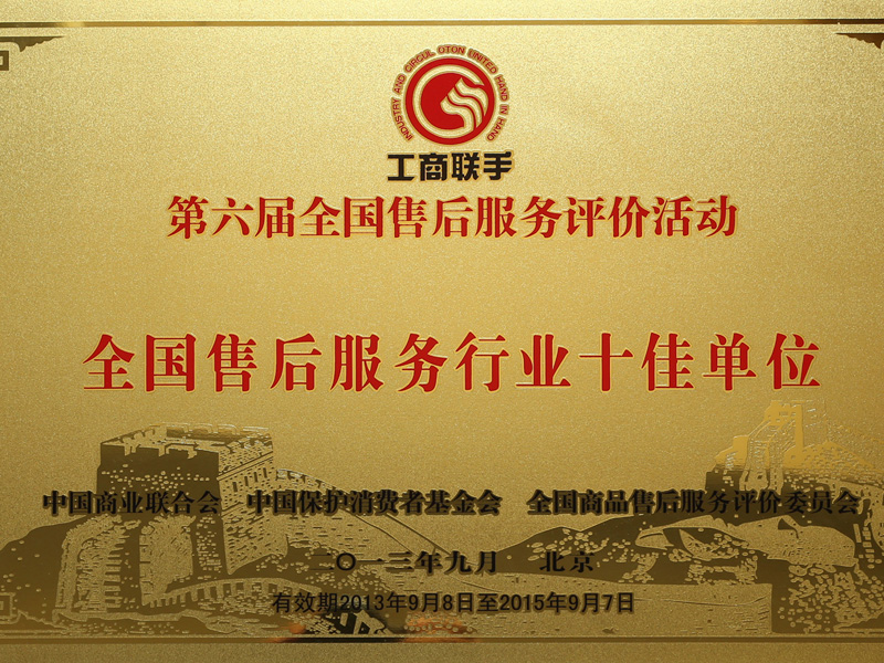 授予部门:中国商业联合会/中国保护消费者基金会/全国商品售后服务评价委员会