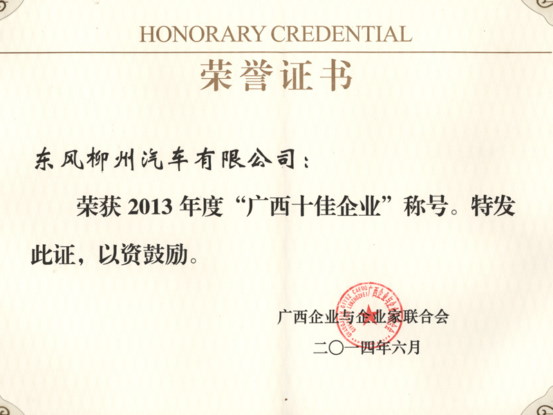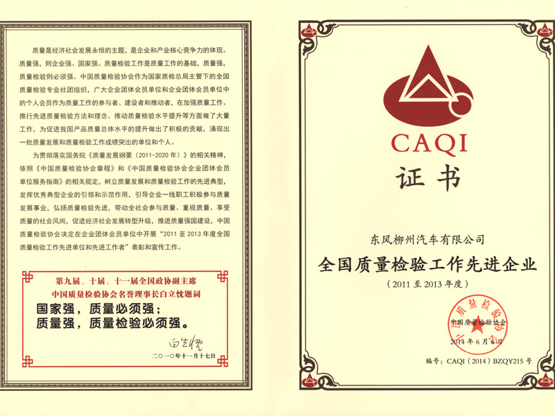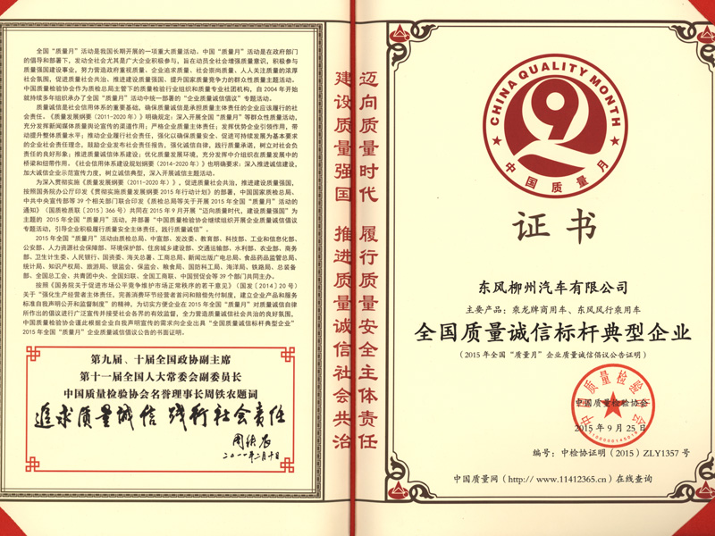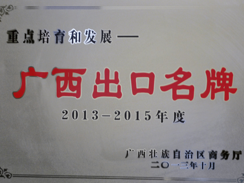 获奖名称:2015年广西实施卓越绩效模式先进企业
