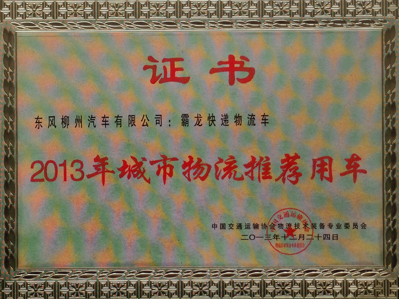 获奖名称:霸龙快递物流车为2013年城市物流推荐用车